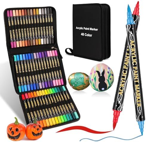 View full details48 Colors Acrylic Paint Markers,Dual Tip Acrylic Paint Pens,Includes 12 Metallic Brush Tip Markers For Rock Painting,Halloween Decor,Plastic,Pumpkin,Canvas And Diy Crafts Christmas Gifts
