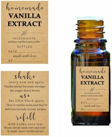 View full details48 Pack Kraft Homemade Vanilla Extract Stickers 1.5×2 inch Square Personalized Vanilla Instruction Labels for Handcrafted Vanilla Bottles,Holiday Christmas Gifts,Jar Kitchen Pantry