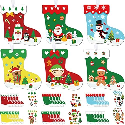 Package Includes: you will get 48 pieces of Christmas stockings craft kits with stickers in 6 different styles, 8 of each style, 48 pieces of wh...
