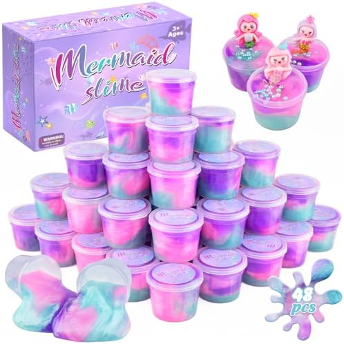 View full details48 Pack Mini Galaxy Slime, Mermaid Slime Party Favors for Kids 8-12, Super Soft & Non-Sticky, Birthday Gifts, Classroom Prizes, Christmas Stuffers, Stretchy Galaxy Slime Kit for Girls and Boys