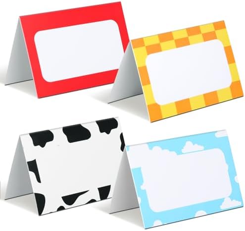 View full details48 Pcs Food Labels Signs Folded Place Cards for Table Setting Blank Name Cards Birthday Party Story Party Decorations(Cartoon Story)