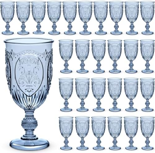 View full details48 Pcs Plastic Goblets 7.5oz Vintage Goblet Plastic Wine Glasses Colored Retro Embossed Water Goblets for Wine Bar Juice Baby Shower Wedding Reception Grand Event Party (Blue)