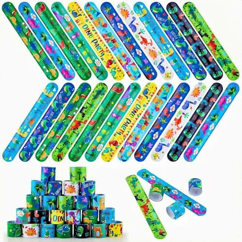 View full details48 Pcs Slap Bracelets for Kids Dinosaur Snap Bracelets Bulk Bracelet for Boys Party Supplies Favors Classroom Prizes Exchanging Gifts Christmas Easter Thanksgiving Holiday Gifts