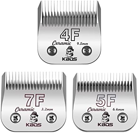 View full details4F/5F/7F 3PACKS Detachable Ceramic Pet Clipper Blades,Compatible with Most Andis,Oster,Wahl KM Series A5 Clippers,Made of Ceramic Blade Cutter and Carbon Steel Bottom Blade