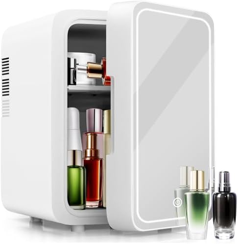 View full details4L Mini Skincare Fridge with Dimmable LED Mirror | Holds 6 Cans | Portable Cooler & Warmer for Cosmetics, Skincare, Bedroom & Office | Compact Refrigerator, White