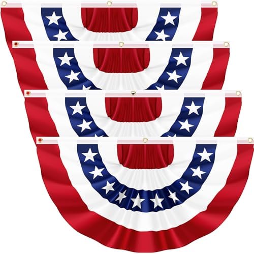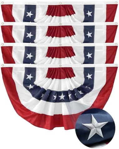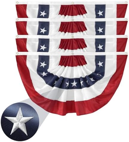 View full details4Pack Bunting Flag 2x4 Ft American Patriotic Bunting 4th of July Decor Outside Porch USA Pleated Half Fan Flag Decorate Garden Embroidered Star Red White & Blue Banner
