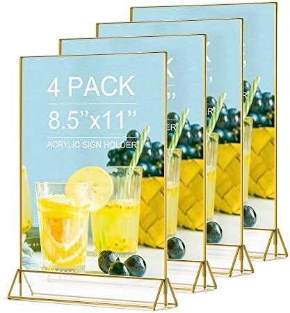 View full details4Pack 8.5x11 Gold Picture Frame Acrylic Sign Holder,Wedding Signs Table Numbers Menu Holders