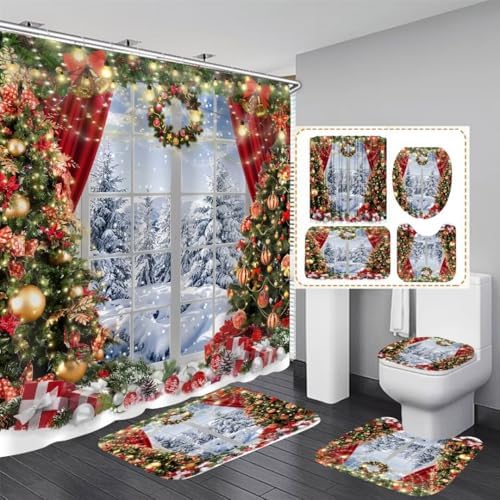 View full details4Pcs Christmas Shower Curtain Set Winter Bathroom Set with Shower Curtain and Rugs,Snowy Forest Shower Curtain Set, Snow Covered Pine Trees Bath Accessories Set