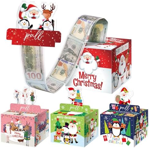 View full details4PCS Christmas Money Box for Cash Gift Pull,Funny Surprise Box Money Gift Box for Kids Adults with 80 Transparent Bags,Exploding Money Roll Pull Pouch,Creative Ways to Give Money Gifts