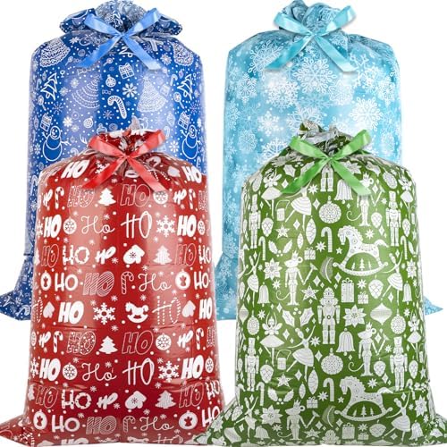 View full details4PCS Extra Large Christmas Plastic Gift Bags, Jumbo 60" x 36" Giant Xl Bags with Ribbon and Tag for Oversized Xmas Holiday Presents Wrapping.