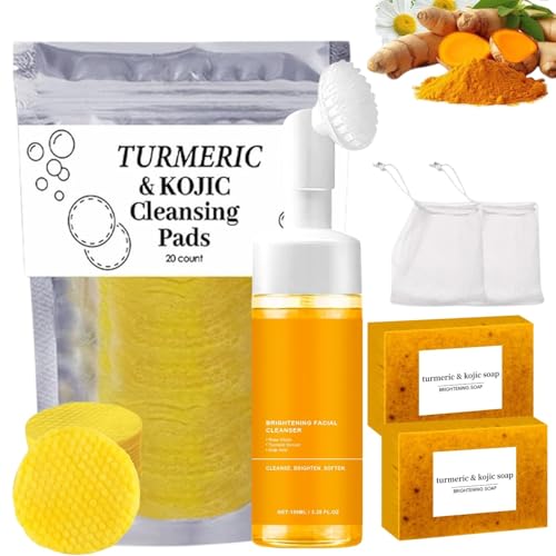 View full details4Pcs Turmeric Wash and Care Three Piece Set, Tuemeric Facial Cleanser & Turmeric Soap Bar & Turmeric Cleansing Exfoliating Pads, for All Skin Types, with 2 Bubble nets
