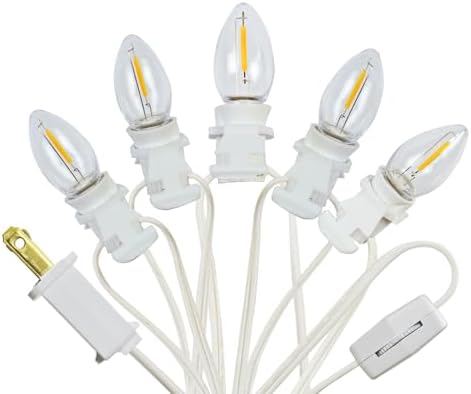 View full details5 Base C7 String Bulbs Christmas Village Light Accessory Cord with 5 LED Light Bulb Universal Clip White Cord with On/Off Spare Fuse Switch Plugs for Decorations Christmas Village House