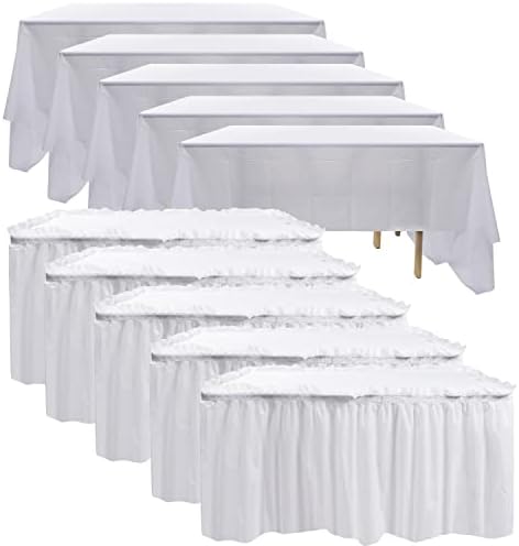 【5 Pack Tablecloths and Table Skirts Set】: Package included 5 Pack Table Skirts + 5 Pack Table Cloths. Tablecloth is 54 x 108 inches, table skir...