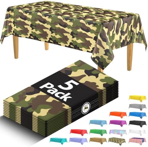 View full details5 Pack Premium Camo Plastic Tablecloth - 108 x 54 in. Army Birthday Party Decorations - Disposable Army Party Decorations Plastic Table Cloth - Decorative Rectangle Table Cover - Camouflage Tablecloth