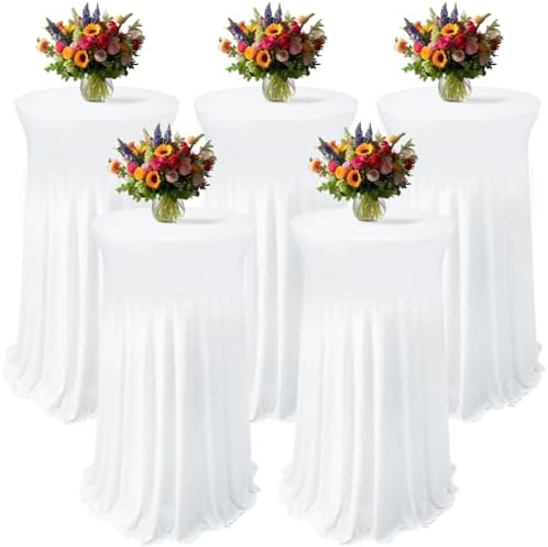 Spandex Table Covers: This set includes 5 packs of high-quality white cocktail table cloths, perfect for simultaneous use or replacement. Made f...