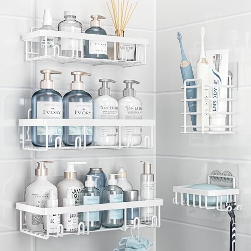 View full details5 Pack Shower Caddy Organizer Rack Shelf for Inside Shower, Self Adhesive Wall Storage Basket Rustproof Stainless Steel Shampoo Holder Bathroom Accessory Decor Set, White