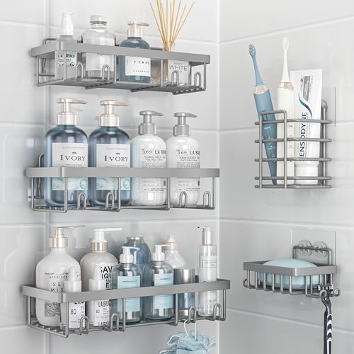 View full details5 Pack Shower Caddy Organizer Rack Shelf for Inside Shower, Self Adhesive Bathroom Wall Storage Basket Rustproof Stainless Steel Large Capacity Shampoo Holder, Grey