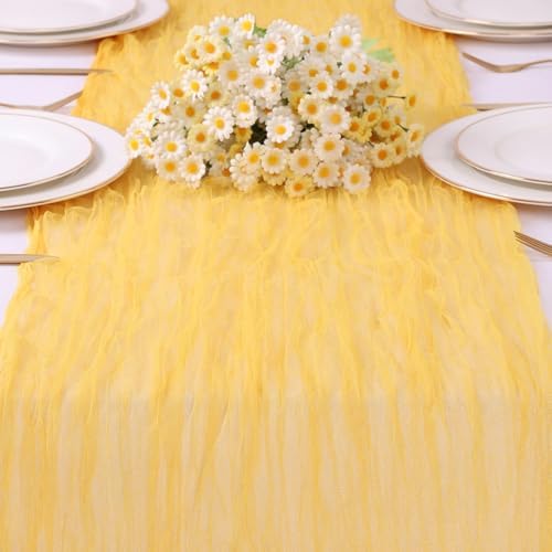 5 Pcs Yellow Gauze Table Runner 10ft Rustic Cheese Cloth Table Runner Boho Style Decoration for Romantic Date Wedding Party Baby Shower Photography Decoration