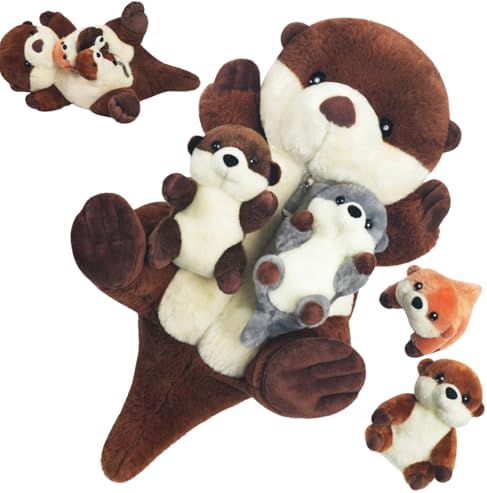 View full details5 PCS Sea Otter Stuffed Animals, Large Mommy Stuffed Otter Plush with Babies Inside - Soft Cuddly Otter Pillow Toy with 4 Babies in Zippered Belly for Kids Christmas Birthday Gifts Ocean Party Decors
