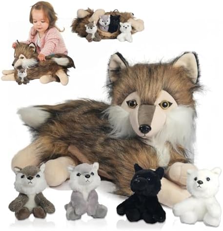 View full details5 Pcs Wolf Stuffed Animal Plush Set 16 Inch Large Mommy Stuffed Wolf Plush Toy with 4 Babies Wolves Inside Belly, Soft Plush Wolf Toys Plushies for Kids Boys Girls Birthday Christmas
