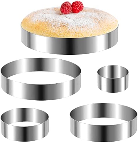 View full details5 Pieces Round Cake Ring Set Biscuit Cutter Circle Cookie Cutters Cake Mold Stainless Steel Pastry Ring for Baking Mousse Pancake Tart Muffin (5 Sizes)