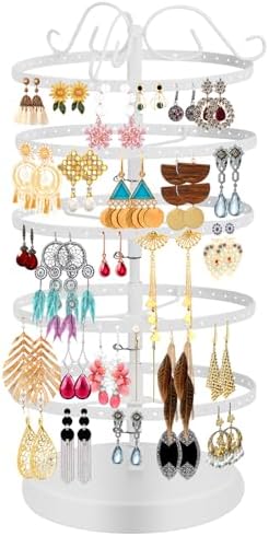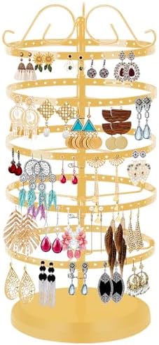 View full details5 Tier 360 Rotating Earring Holder Organizer Stand, Jewelry Tree Rack, 220 Holes Display Storage for Stud Hoop Earrings, Vintage Metal Design, Space Saving Table Decor