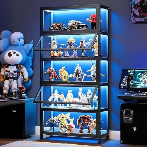 View full details5 Tier Curio Display Cabinet, Storage Shelves with Acrylic Glass Door, Collectibles Toy Organizers Rack & Display Shelf, Kids Display Case for Bedroom, Reading Nook, Toddler's Room (Grey Flip Door)