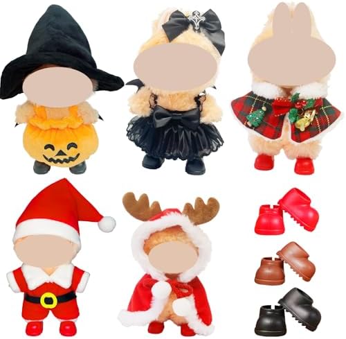 View full details5 Sets Halloween Doll Clothes Outfits 17cm Dolls Costume Accessories Pumpkin Santa Claus for Halloween Christmas Winter Holiday Party Favors Decoration Gifts