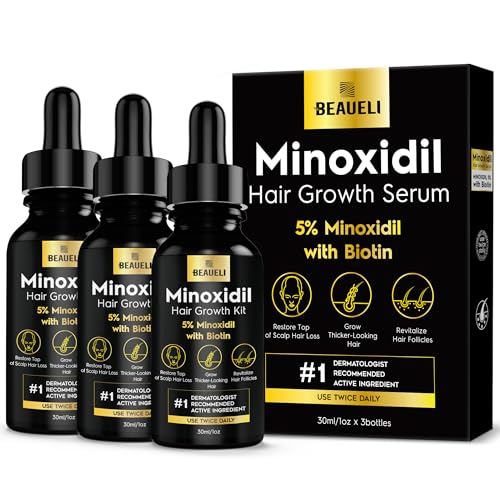 View full details5% Minoxidil for Men and Women Hair Growth Serum, Biotin Hair Growth, Hair Regrowth Treatment for Scalp Hair Loss Hair Thinning for Thicker Longer Fuller Healthier Hair (Pack of 3)