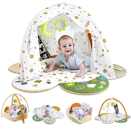 View full details5-in-1 Baby Play Gym Mat, Tummy Time Activity Mat with 7 Toys for Stage-Based Sensory and Motor Skill Development, Washable Play Mats for Infant, Baby Toys Gift for Toddler Infant 0-3-6-9-12 Months