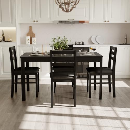 View full details5-Piece Solid Wood Indoor Modern Rectangular Dining Table Set for 4,Table and 4 Chairs Set with Soft Cushions for Kitchen,Bar,Living Room,Breakfast Nook,Black