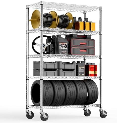 View full details5-Shelf Storage Shelves,Wire Shelving Heavy Duty Metal Storage Shelving Unit Adjustable Garage Shelving Rack Pantry Kitchen (Chrome, 5 Tier,17.7" D x 47.2" W x 76.7" H)