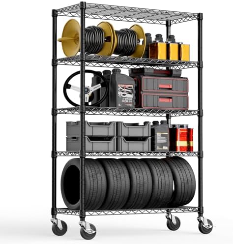View full details5-Shelf Storage Shelves,Wire Shelving Heavy Duty Metal Storage Shelving Unit Adjustable Garage Shelving Rack Pantry Kitchen (Black, 5 Tier,17.7" D x 47.2" W x 76.7" H)