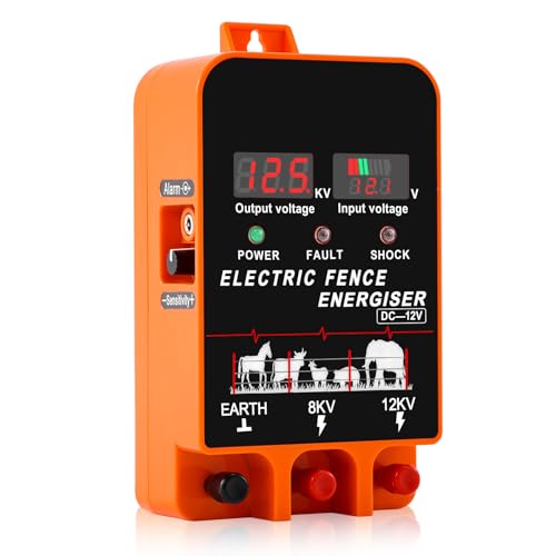 View full details5.5J Electric Fence Charger Energizer, 5.5 Joules 200 Acres, AC DC 2 in 1 Powered Supply, Input 12V Output 8 KV or 12KV, with Display and Alarm, Contain Cattle Cow and Livestock, No Remote