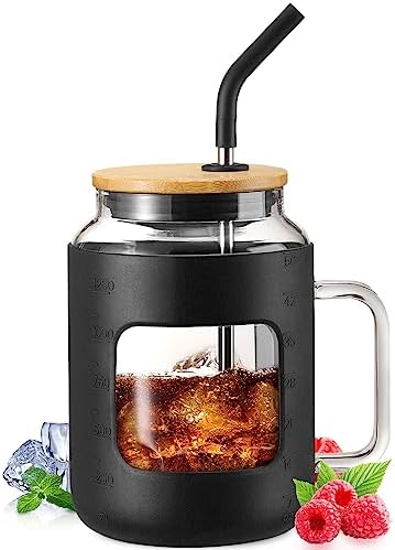 View full details50 oz Glass Water Bottles with Silicone Sleeve,Glass Tumbler with Lid and Straw,Iced Coffee Cup with Handle,BPA Free-Black