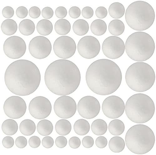 View full details50 Pack Craft Foam Balls, 5 Sizes(1-2.4 Inches), White Polystyrene Smooth Round Balls, Foam Balls for Arts and Crafts, Christmas, DIY Craft for Home, Supplies School Craft Project and Holiday Party