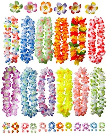View full details50 PCS Soft Hawaiian Leis Luau Party Decorations Tropical Favors Lei Flower Hair Clip,Headbands and Wristbands Perfect for Your Hawaii Luaus Party.