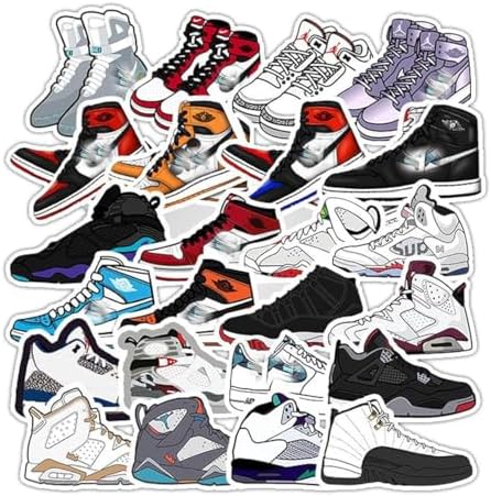 View full details50 Pcs Rare Limited Edition Sneakers Vinyl Sticker Waterproof Stickers Bomb for Wall, Computer, Laptop, Skateboard, Water Bottle, Kids Scrapbook Gift for Birthday, Christmas, Thanksgiving (Sneakers)