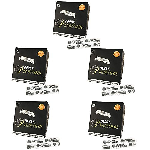 500 "Derby Premium" Single Edge Razor Blades for straight razor Cutting-edge spluttering equipment coat the edges of each blade in chromium-...