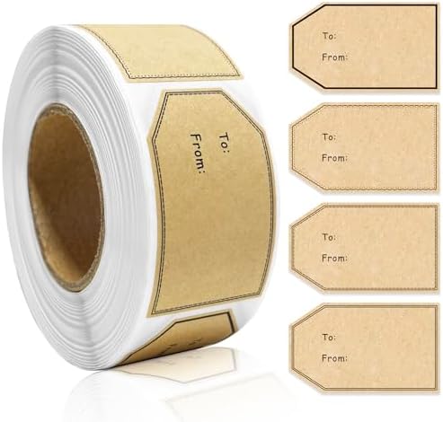View full details500 PCS Gift Tag Stickers, 1.18" x 2" Brown Kraft to and from Gift Name Labels, 4 Different Design, Self Adhesive Christmas Tags Holiday Present Stickers