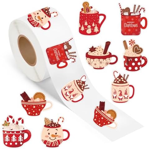 View full details500 Pcs Christmas Hot Cocoa Stickers Roll Chocolate Candy Cane Gingerbread Coffee Cup Winter Xmas New Year Self Adhesive Waterproof for Party Supplies Decorations Scrapbook School DIY Craft Decals