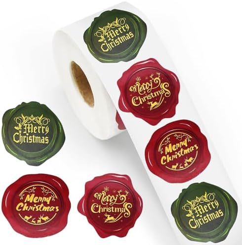 View full details500 Pieces 1.5 Inch Christmas Stickers Roll for Envelope - 3 Designs Stamp Shape Round Merry Christmas Sticker Self Adhesive Tag Seals Labels for Holiday Greeting, Sealing, Gifting, Gift Decorations