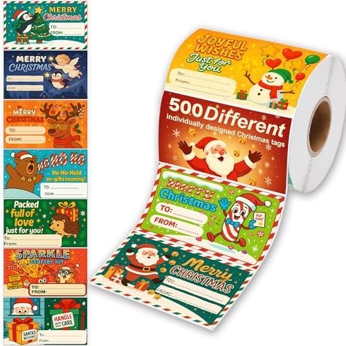 View full details500 PCS Christmas Gift Tags Self-Adhesive,Gift Tag Stickers,Name Tags for Christmas Presents,Xmas Gift Tag (Color C)
