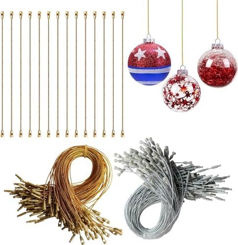 View full details500Pcs Silver&Gold Ornament Hooks Ornament Hangers Ribbon Ornament String with Snaps Precut String Hangers Snap Fasteners Rope Hooks for Halloween Christmas Ornaments Price Tag Crafts Gift Tag