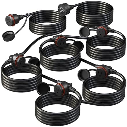 View full details50FT Black Outdoor Extension Cord, Evenly Spaced 6 Outlets Plugs with Waterproof Cover, 16/3 SJTW Weatherproof Multiple Outlets Wire for Holiday Light and Halloween Christmas Decoration, ETL Listed