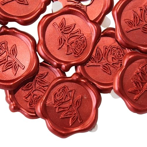 Package Contene: You will get 50pcs red rose style wax seal stickers made by pure hand, the rose wax seal sticker is 1.18 inches/30 mm in diamet...
