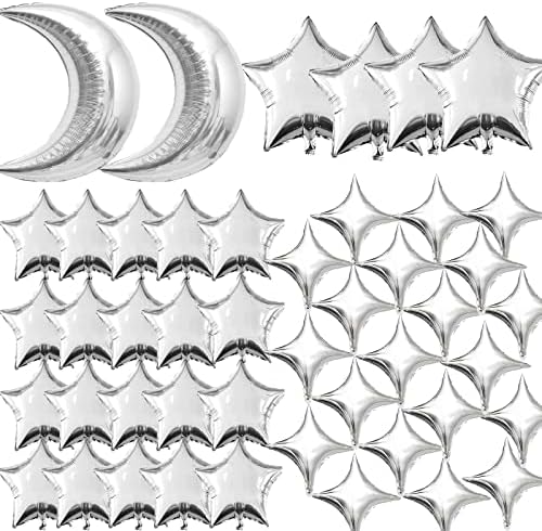 View full details50pcs Silver Moon and Star Balloons,36"Moon Foil Balloons 18"10" Star Foil Balloons Four Pointed Star Balloon Mylar Balloon for Baby Shower Christmas Wedding Birthday Party