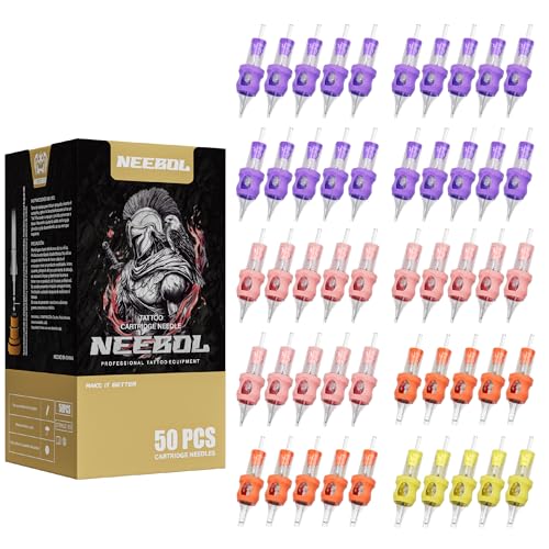 View full details50pcs Neebol Tattoo Cartridge Needles Disposable Mixed Sizes Tattoo Needles Round Liner Shader Magnum for Tattoo Pen Machine Tattoo Supplies Permanent Makeup Body Art (50pcs Standard RL)