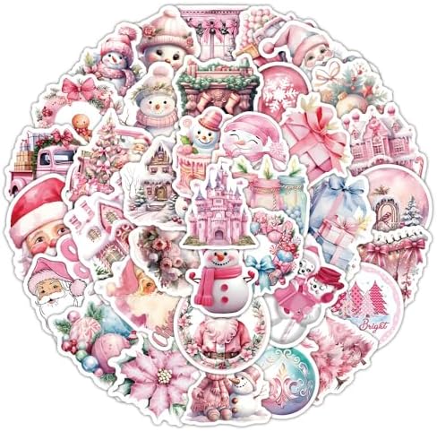 View full details52pcs Christmas Sticker for Kid,Pink Vintage Christmas Party Favor Supply Sticker,Waterproof Water Bottles Laptop Motorcycle Guitar Skateboard Graffiti Decals Xmas Gifts Stickers for Kids Teens Girls