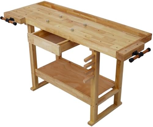 View full details55" Solid Wood Workbench with 1 Drawer and 1 Shelf, Professional Rubberwood Wooden Workbench for Garage and Woodworking Carpenter Workshop 330 lbs Capacity (Natural)
